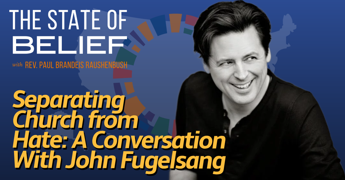 This week on The State of Belief, truth through comedy. Host Rev. Paul Brandeis Raushenbush welcomes comedic genius John Fugelsang, author of the new book Separation of Church and Hate: A Sane Person’s Guide to Taking Back the Bible from Fundamentalists, Fascists, and Flock-Fleecing Frauds coming September 9th. Together, they delve into the tension between progressive values and mainstream Christianity, or as John puts it, being “too Christian for the liberals and way too liberal for the Christians.” As they explore this topic, John summarizes the teachings of Jesus: “Welcome the stranger, man. I mean, that’s about it.” The child of a former Catholic priest and former Catholic nun, John aims his sharp wit and brilliant mind at a topic he is deeply passionate about: using Scripture to challenge the all-too-often unchallenged claims to godliness by Christian Nationalists and fundamentalist Christians.