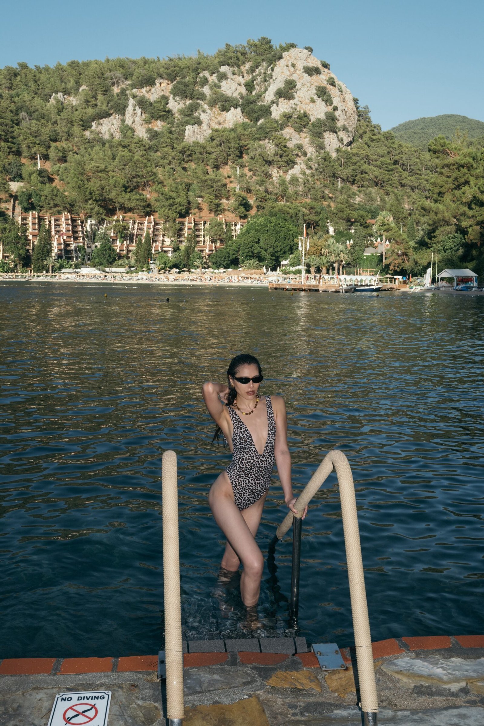 A salty summer story in Fethiye, Turkey at the very beautiful and picturesque Hillside Beach Club. I swam, ate the best fresh tabbouleh I’ve ever had in my life, and matched my looks to the colors of the Mediterranean. Think bold colors and printed scarves wrapped around my hair and my waist. It was my first time in this part of the world and I already miss the little things that make the Aegean Coast so special like baklava for breakfast and a proper Turkish tea after every meal. I miss the classical music on the sea and I miss the lazy sunset boat rides hopping the Göcek 12 Islands. It may be one of the most beautiful beaches I’ve ever been to. Hillside Beach Club is a hidden gem. Calm by day, and a true party by night. I wouldn’t mind spending every summer right here.