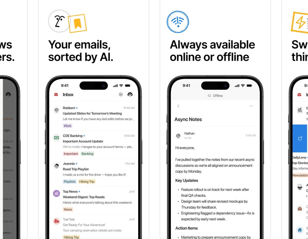 The app uses AI for a number of tasks. Most importantly, it will label and organize incoming emails automatically. That requires using the Mac app to setup first.