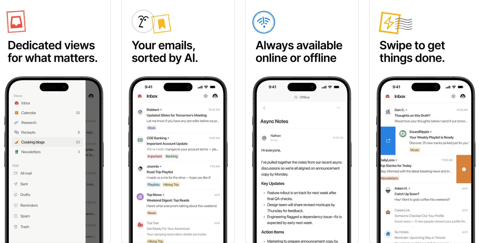 Unlike other email apps, you can manage your inbox and create drafts even when offline, making it valuable to use on a plane ride or in an area with bad cell reception.