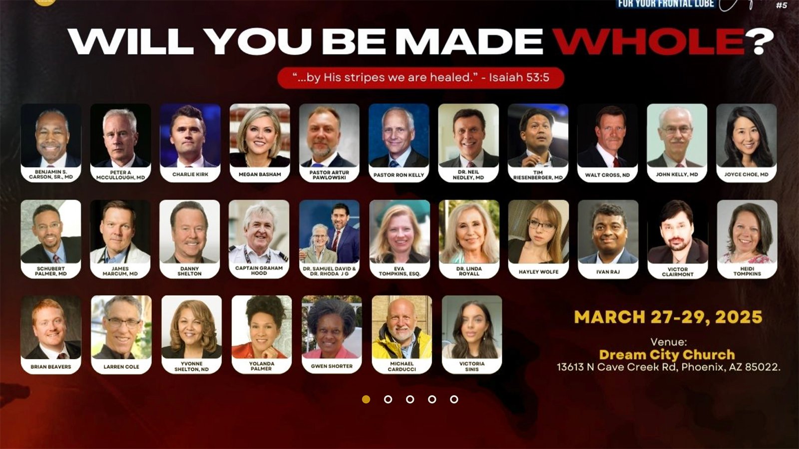 The “Will You Be Made Whole?” conference begins Thursday (March 27) in Phoenix at Dream City Church, the same congregation that hosts MAGA superstar Charlie Kirk’s monthly Freedom Night rallies. The conference will feature Kirk, Adventist pastors and MAHA leaders, along with a group of anti-vaxxers, COVID-19 skeptics and proponents of alternative medicine.