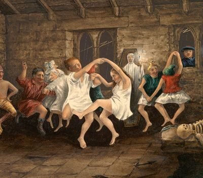 Nannie and her cohorts aren’t pleased to hear it: Tam has to flee on horseback with a crowd of screeching witches in hot pursuit, “Wi’