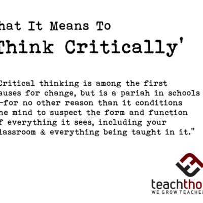 by Terry Heick What does ‘critical thinking’ mean? Well, that depends on who you ask. For educators, as a term, critical thinking is similar to