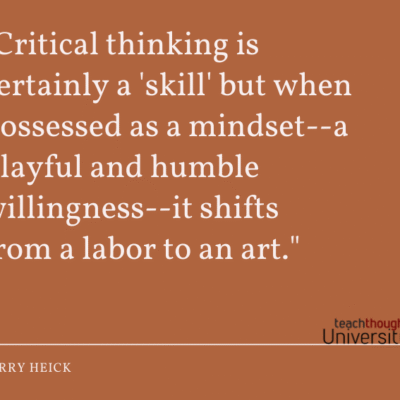 by Terry Heick Every few months, I see an article making the rounds that critical thinking isn’t a skill and therefore can’t be taught. And