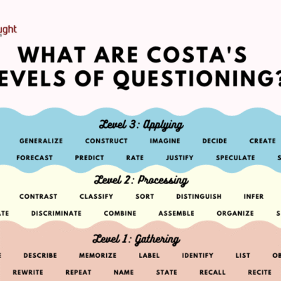 Costa’s Levels of Questioning — designed by educational researcher Art Costa — feature three tiers of questioning designed to promote higher-level thinking and inquiry. Similar