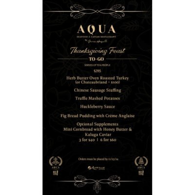 Feast on an Appetizing Thanksgiving Dinner With Aqua Seafood & Caviar Restaurant’s To-Go Menu Special