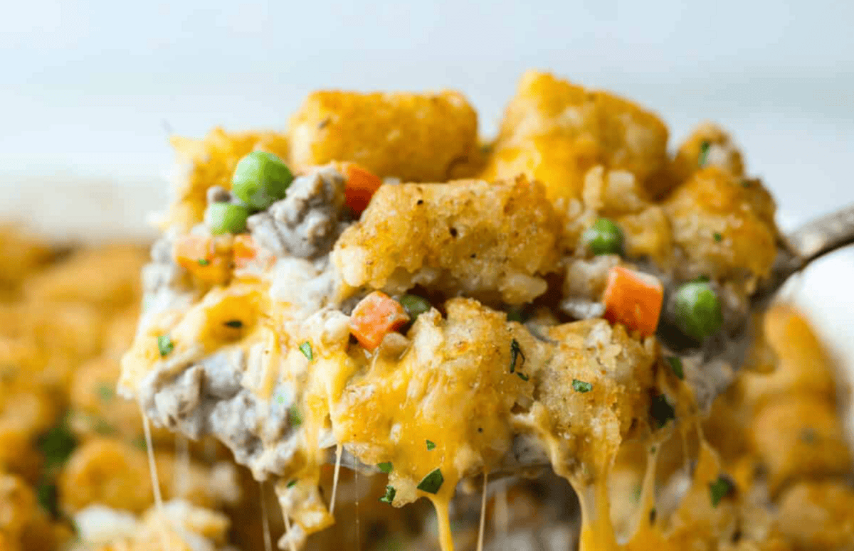 Alright, let’s make the magic happen! This easy tater tot casserole recipe comes together in just a few simple steps. Whip up some simple buttermilk biscuits, and dinner is served!