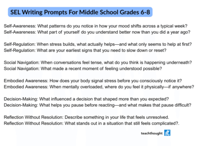 20 SEL Writing Prompts For Middle School Grades 6-8