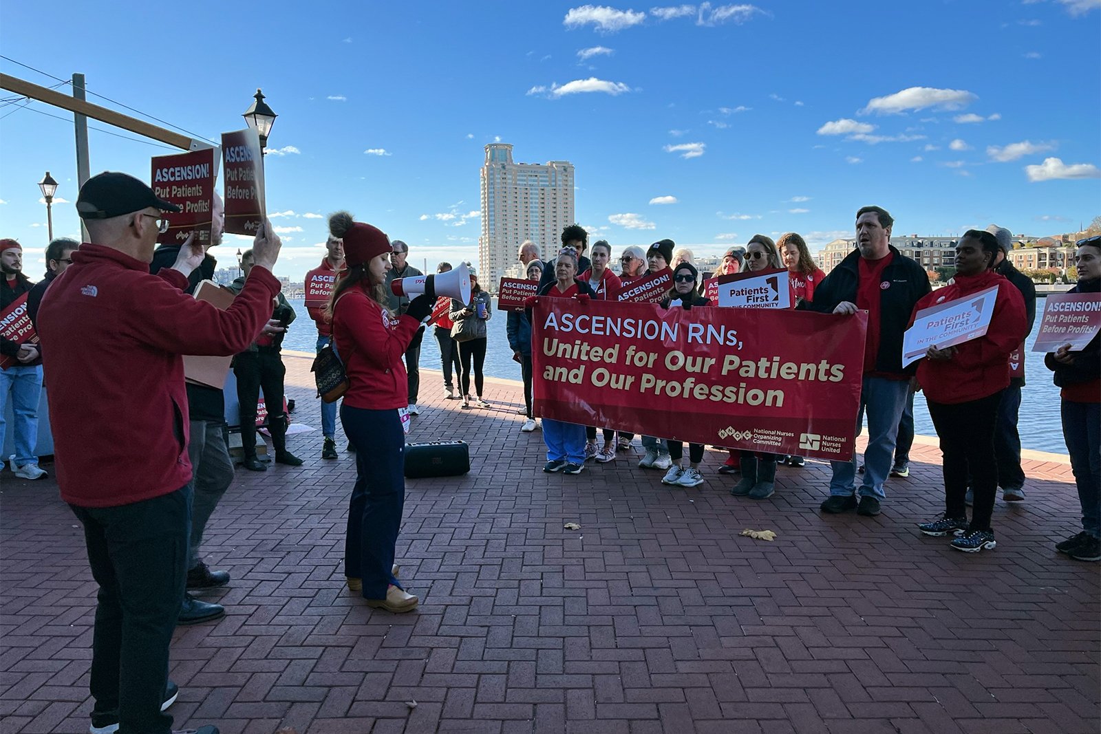 In July, NNU nurses at Saint Agnes held a historic one-day strike following more than a year and a half of contract negotiations. They say Ascension has refused to meet their demands, including ensuring safe nurse-to-patient staffing ratios, requiring appropriate nurse assignments based on expertise, and enacting a policy prohibiting patient assignments to charge nurses.