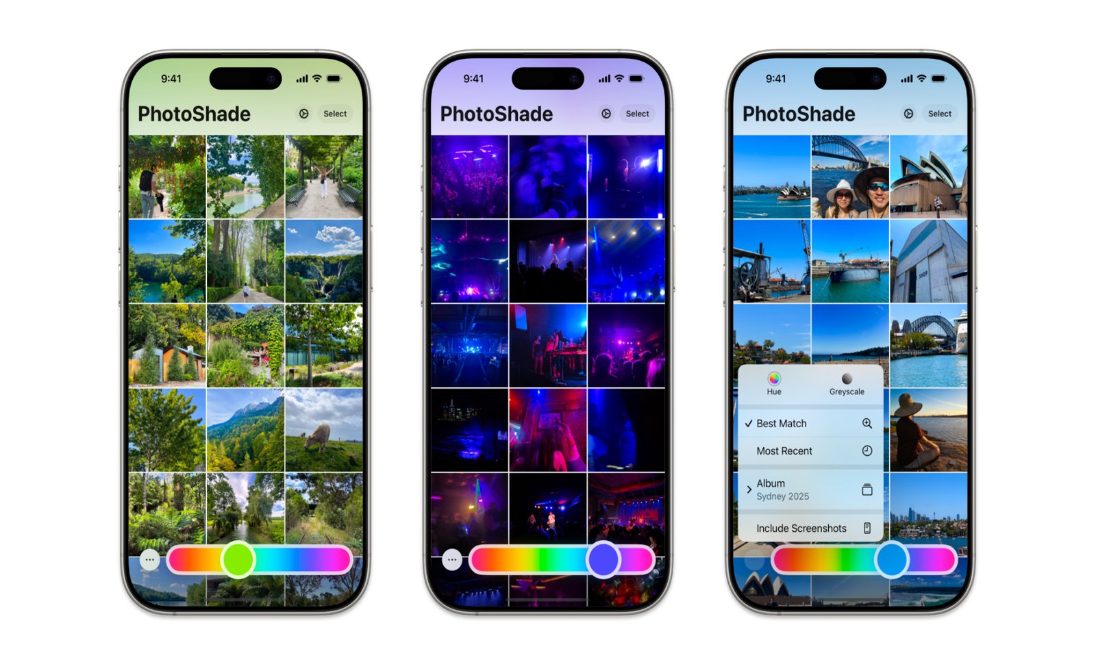 The big highlight of the app is the Hue Search feature, You can drag the color slider and watch the grid update with all the photos in that colors. You can find vivid sunsets, green landscapes, and much more.
