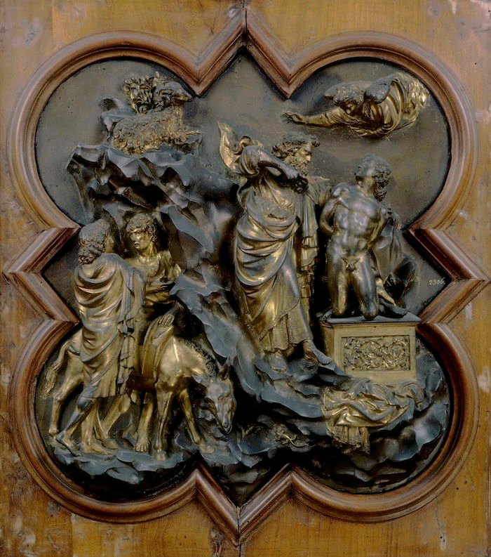 To decide between them, the Arte di Calimala announced a competition. Each artist had a year to cast a bronze panel in the shape of a quatrefoil, illustrating the story of the sacrifice of Isaac, in whatever manner they pleased. A jury of 34 experts, headed by wealthy banker Giovanni di Bicci de’ Medici, would then adjudicate between them.