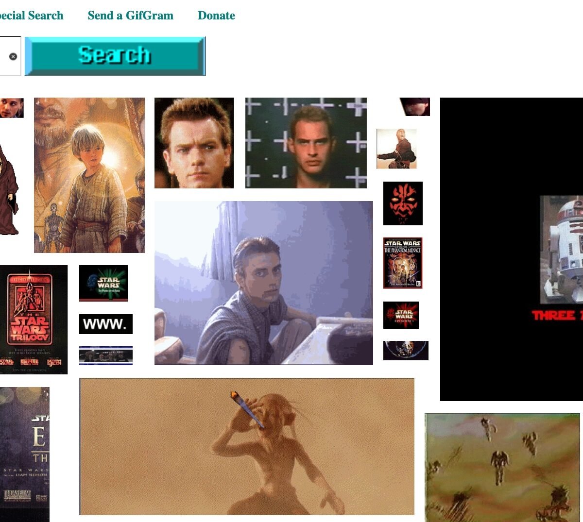 GIF search results for Phantom Menace from old GeoCities pages.