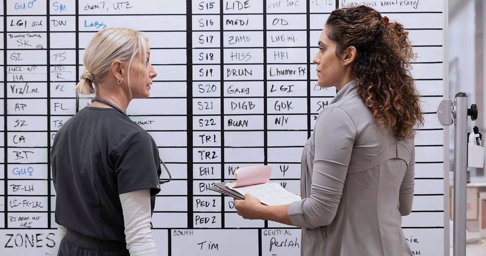 • Dana is a conduit for both hospital past and future in this episode. She calls in Monica Peters, a retired clerk who “runs a tight ship” and immediately makes things in the analog ED much less chaotic. She also takes a moment to tell Emma how well she did with sexual-assault victim Ilana. Emma should be proud of herself.