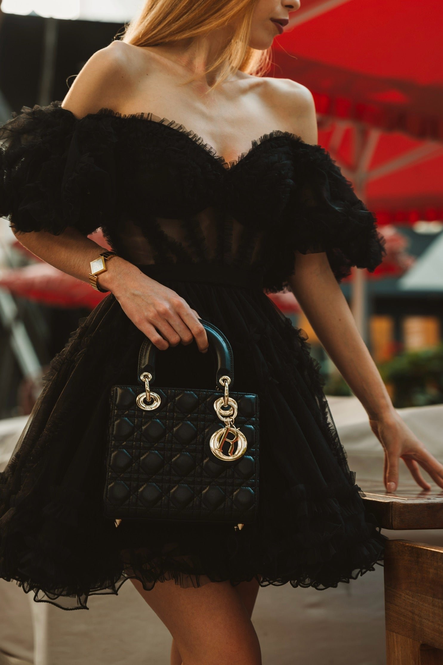 Hair & layer: A sleek chignon or brushed waves feels timeless over an LBD. Add a shawl, structured blazer, or whisper-sheer topper if the forecast or venue AC is… dramatic. (We see you, hotel ballrooms.)