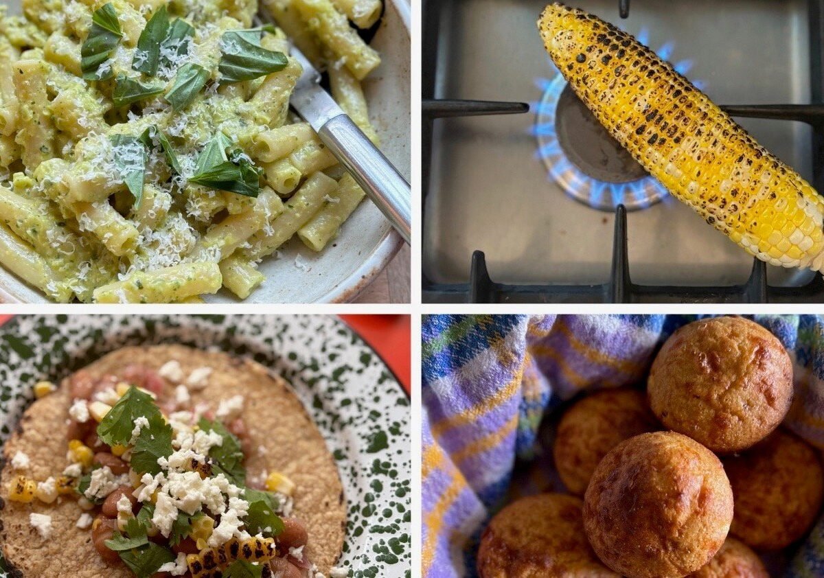 As a fan of their newsletter, I asked Greta and Fanny if they’d be up for sharing summery recipes. I especially love their issues on vegetables (most recently, peas), so they suggested putting together three dishes starring corn. “We love peak-season corn for lots of reasons,” Fanny said. “It flexes sweet and savory, it runs the gamut between crunchy and creamy, it can be used in a bazillion ways, and, crucially, it generally appeals to every member of the family, from toothless new eaters to discerning adults.”